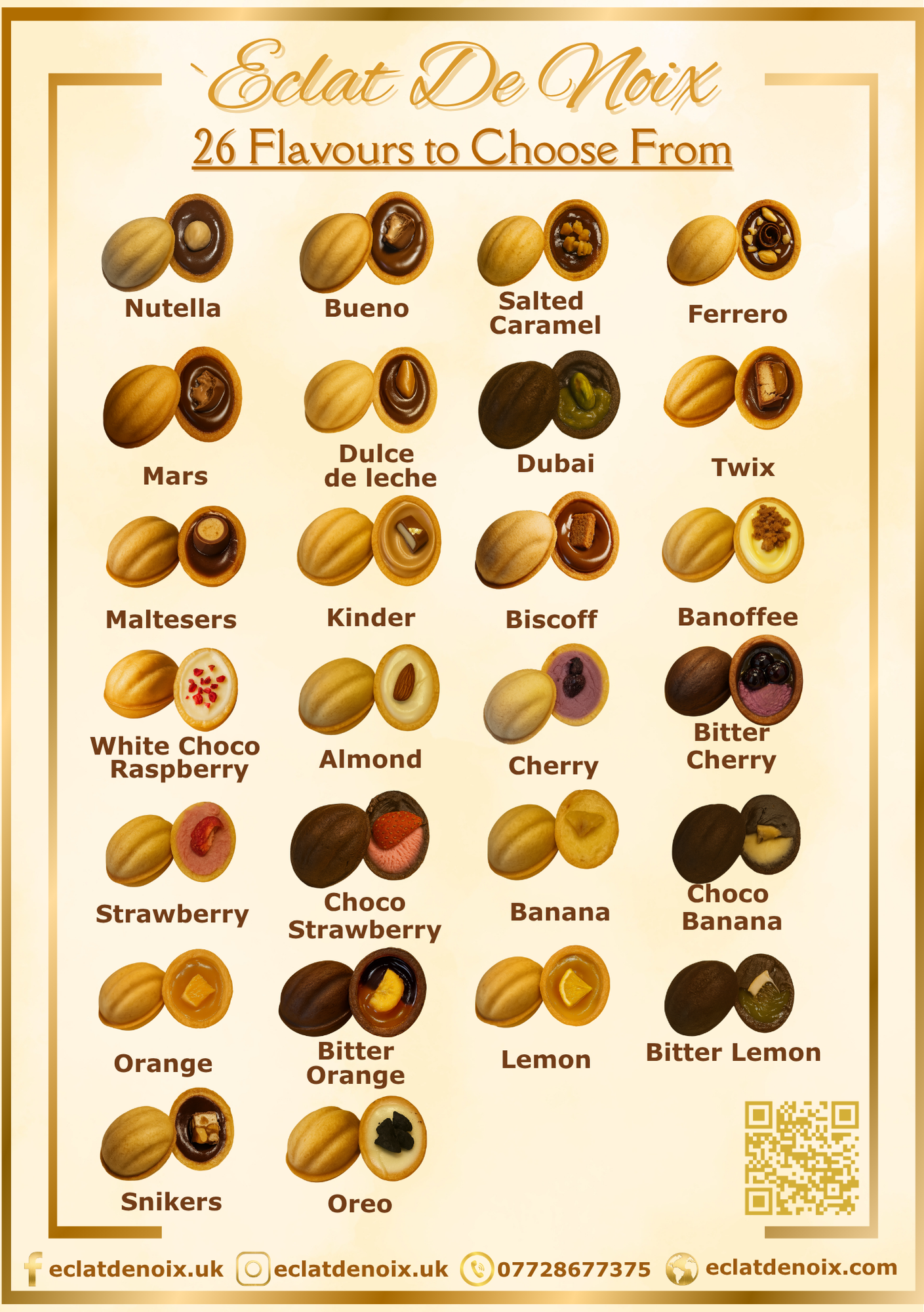 At the heart of every nutshell lies a golden dough — crafted with wheat flour, butter, sugar, eggs, and a hint of cocoa.